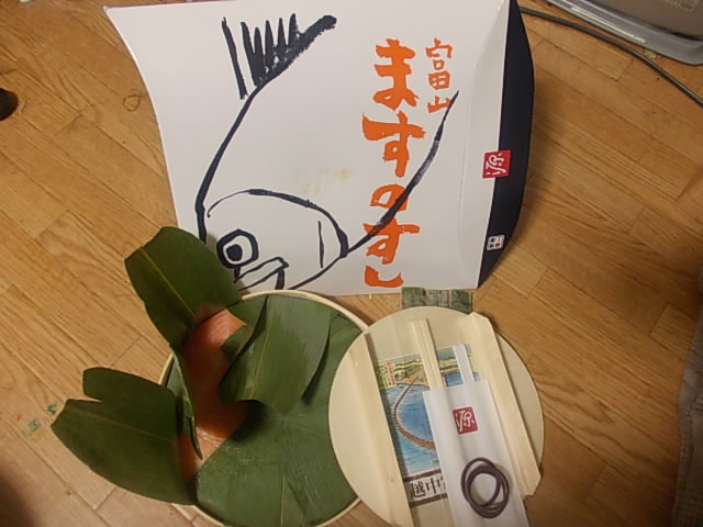 日本有数の駅弁の一つである富山駅の「ますのすし」は、最早駅弁のレベルを越えて全国にその名を轟かせているかと思います。包装のデザインは昔からそれ程変わっておらず、酢飯が効いてそれなりに持ちも良いので、お土産にも喜ばれる一品です。食べたことない方でも多くの駅弁大会などの催事では必ずといっても姿を見せる一品ですので、是非御賞味下さい。