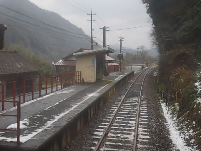 三江線上には、色々な視点から味わい深い駅が点在していますが、地理的な観点から一番マニアックなのはこの伊賀和志駅ではないでしょうか。両隣の駅が島根県に属していますが、ここは何と広島県の三次市域にあります。同じ三次市内でも、三次駅付近とは随分と違った印象で、冬季も積雪量が非常に多いエリアで、かなり山奥に来たなあと実感できる駅です。歴史的には開業は1975年と、三江線上で一番最後に開通した口羽~浜原駅間の駅ですので、自分より若い駅なのか(年がばれてしまいますね…(汗))と、ローカルな侘び寂びと駅自体の若さとのアンバランスがまた味わい深い駅です。