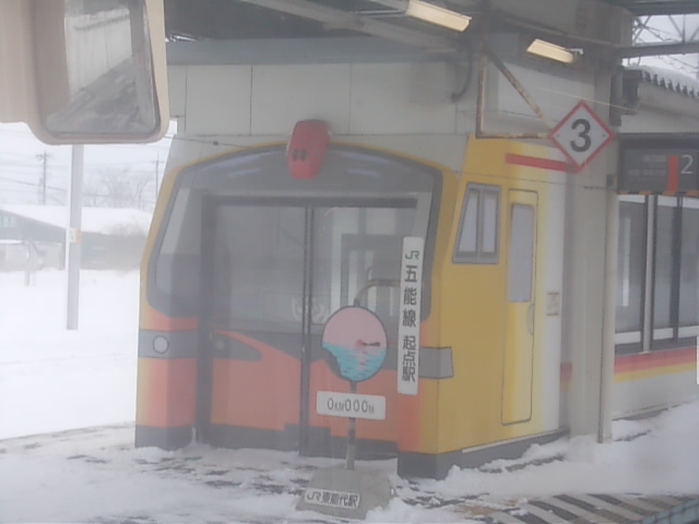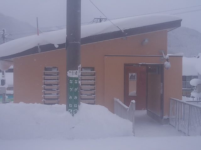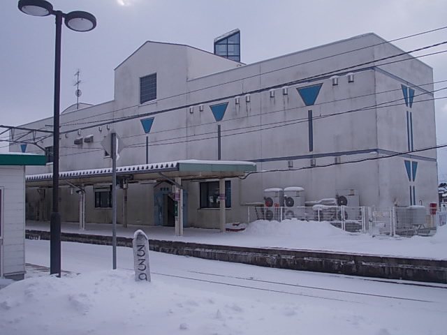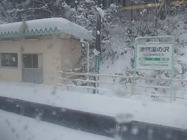 ここは、隣駅が有名な大鰐温泉ですので、知名度的には低いのですが、同じ町内にあります。弘前から大鰐温泉にかけては、比較的平地を走る印象がありますが、この辺りからは徐々に秋田県境に向かっての山越えが始まるという風情で、積雪量もかなり多い印象を受けました。
