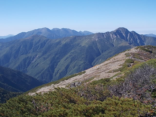 仙丈ケ岳と言えば、北沢峠から簡単に登れる3000メートル峰として、登山初心者の方にも人気が高い日本百名山の一つですが、この山へ至るのに、敢えて北沢峠側からでなく、塩見岳から続く長い仙塩尾根を詰めて登る、というルートを、少し山慣れした方にはお勧めしたいです。仙塩尾根へは野呂川出合から両俣小屋まで林道歩きをして、そこから稜線まで詰めるというルートが一般的ですが、塩見岳と合わせて、途中熊の平小屋などに泊まりながらアクセスするのも、静かな山旅が楽しめてお勧めだと思います。