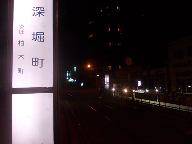 函館の市電沿いにおいては、古い町並みが続くエリアが多いので、意外と郊外型の大型スーパーを見かけない気がします。大型スーパーが情趣ある風景に水を差す場面も全国的にはよくある話なので、それはそれで良いことだとは思いますが、いざ買出しをしようとすると、市電駅前にコンビニがある駅も少なく、裏を返せばそれだけコンビニ利用率の高い若者が市電をあまり利用していないのかな、と、ちょっと寂しくもなってしまうのですが、この深堀町駅の近くには、比較的大きなスーパーがあって、夜間も遅めまで営業していますので、買出しなどで利用価値の高い駅だと思います。