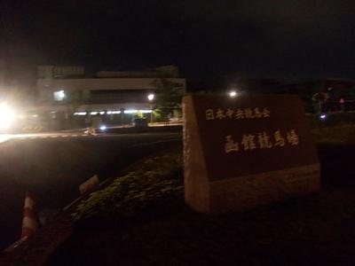 函館市電上では、例えば市役所前駅のように、~前という名称でも、その施設から結構距離があったりする場合がありますが、この競馬場前駅に関しては完全に駅の正面に函館競馬場があり、レース開催時には、新聞を携えたおじさん達で賑わう駅です。逆に夜間訪れると、付近にお店などが全くありませんので、ゴーストタウンのような悲壮感を味わうことが出来ます。