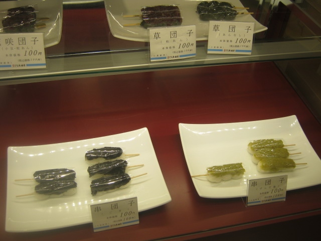 勿論、ここのイチオシは大福餅だと思いますが、へそ曲がりな私は敢えて大福とは90度離れたショーケース内で販売されていた串団子に注目し、醤油とずんだの二点を購入してみました。