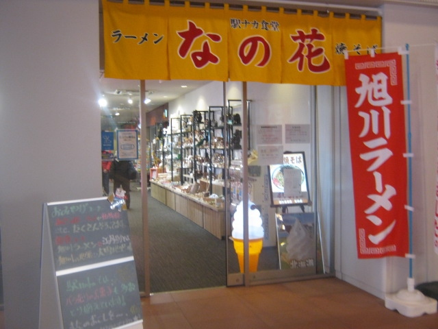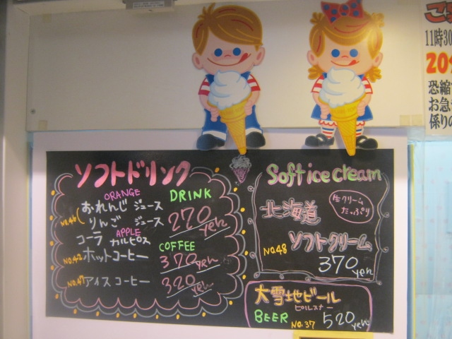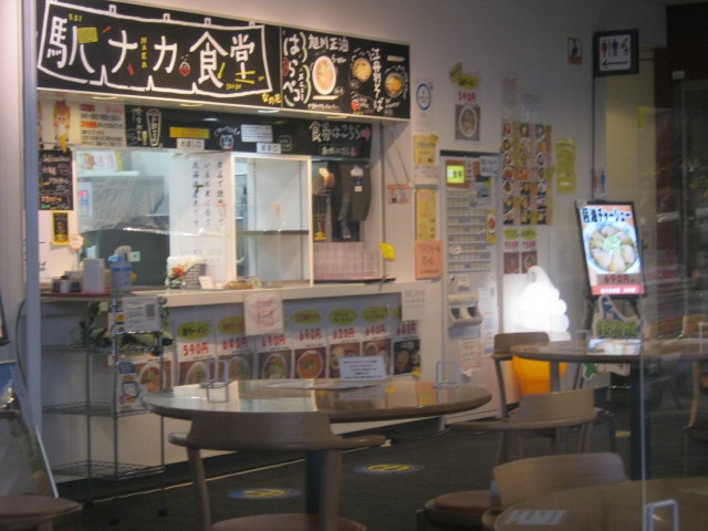 旭川駅東口直結の観光物産情報センターの奥にある食堂で、麺類や丼物など各種扱っているお店です。有名なのはラーメンや江丹別そばなどとなっていますが、実は私のここでのお勧めはソフトクリームで、駅傍のソフトクリームとしてはかなりクオリティ高いと思います。