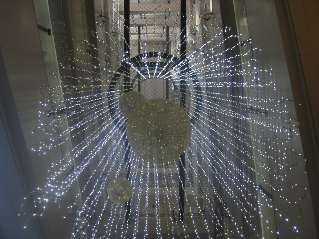 地下には休憩ブースや学生さん向けの自習ブースなんてのも設置されていて、ここで休憩しながら、この電飾を見上げたり、逆に4Fから下を眺めたりするアングルも楽しいですね。- 旅行時期