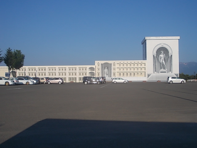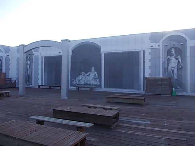 全国にトリックアートを売りにする美術館は幾つかあるかと思いますが、ここのは規模もでかくて、とにかく物珍しさを求めたい方にお勧めしたい場所です。遠くから見ると、本当の彫刻のように見えますが…(笑)。尚、このトリックアート、実は建物の裏側にも続いています。正面の駐車場エリアが広く、裏側に回るのは歩くのも大変かと思いますが、ぜひその芸の細かさを味わいに、裏側にも足を運んでみて下さい。