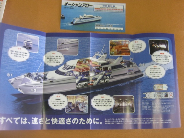 私はSUNQパス利用の”ダダ乗り”でしたが、通常運賃だと所要が倍かかる九商フェリーよりも300円程高い運賃設定になっていて、更に熊本港から熊本市内までに関しては、九商フェリー利用者には提供される予約制の無料シャトルバスが利用できず、産交バス利用で市街地に出なければならないので、500円以上の追加運賃が必要になりますので、やはり貧民はSUNQパス利用時に乗っておきたい船舶といえます。