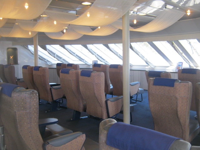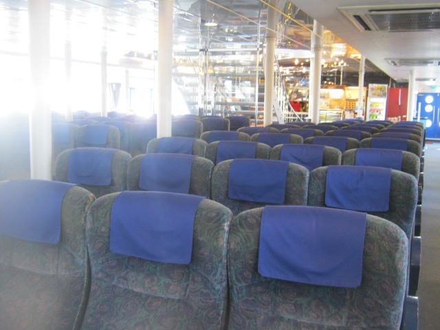 船内の客室は主として二層に分かれていて、下の階の最前方には、リクライニングが出来るちょっと高級なシートの座席があって、ここを利用する場合は400円の追加料金が必要です。
