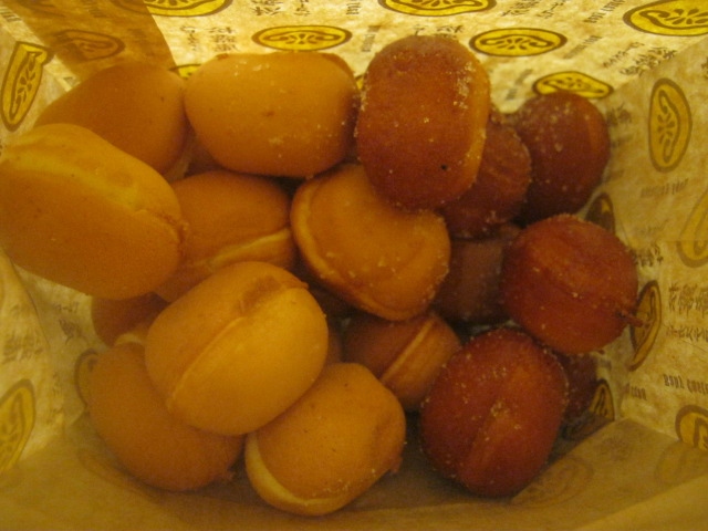 今回は18時過ぎに訪問し、定番のベビーカステラ(15個入り540円)をオーダーしましたが、時間が遅かったこともあってか、揚げベビーカステラを6個サービスしてくれました。