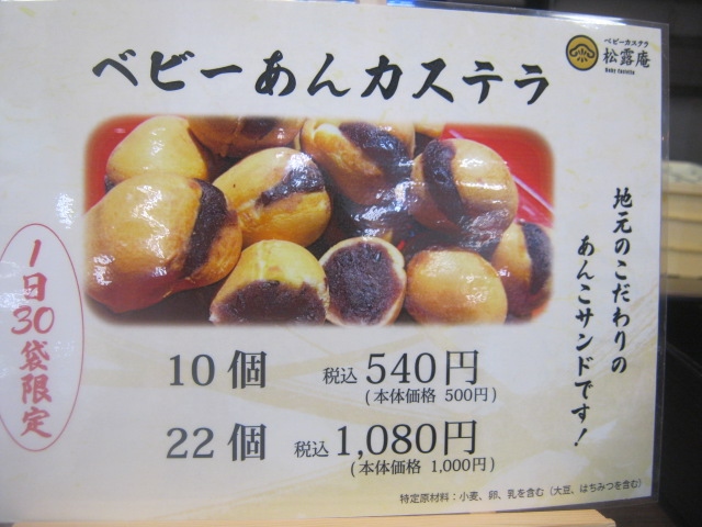 この挙げベビーカステラの中には、刻みベーコンが入ったものもあって、甘い味以外にもいろいろな商品を販売している様子でした。温め直して食べると更に美味しかったです。- 旅行時期