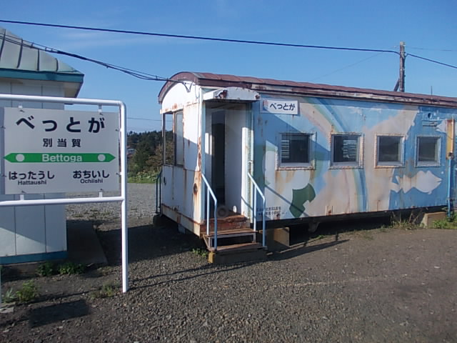 花咲線の根室市域には、根室と落石を除いて、ローカル色豊かな小さい駅が続きますが、この西和田駅もそんな駅の一つです。花咲線の小駅で面白いのは、花咲・西和田・昆布盛と続く3駅に関して、普通列車でもそれぞれほんの少しずつ通過列車があることです。通過駅が統一されていないのは、この3駅間で協定みたいなのがあるのかな、なんて思ったりしますが、どの駅も殆どの列車はちゃんと停車するので、そんな少しだけ通過しなくても、ってちょっと不思議に思ったりもしました。尚、駅付近には道東らしい牧場の風景が広がりますので、牛マニア(?)の方は、付近でモーモーさん達の撮影を楽しむのも良いでしょう。駅舎は典型的な貨車改造タイプですが、配色は独自の配慮がされていました。