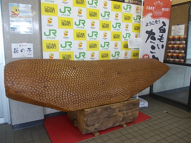この駅は個人的に何度も立ち寄っている駅なので、改めて写真を撮影することも少なかったのですが、有名なのは三浦綾子の小説にも出てきたウロコダンゴや、土日祝日のみに発売される限定駅弁「番屋めし」だと思います。これらは有名なので、解説は他に任せるとして、ここでは敢えてホームの跨線橋の脇に平行して設置されている歩道「ふ・るーと」を紹介させて頂きます。市民の公募により、この名前に決まったそうですが、フルートに乗る魔女(?)が描かれていたりして、なかなか楽しい自由歩道です。駅の跨線橋と違って、こちらはJR乗車券がなくても通れますので、お車などで近くを通られた方も是非立寄ってみて下さいね。