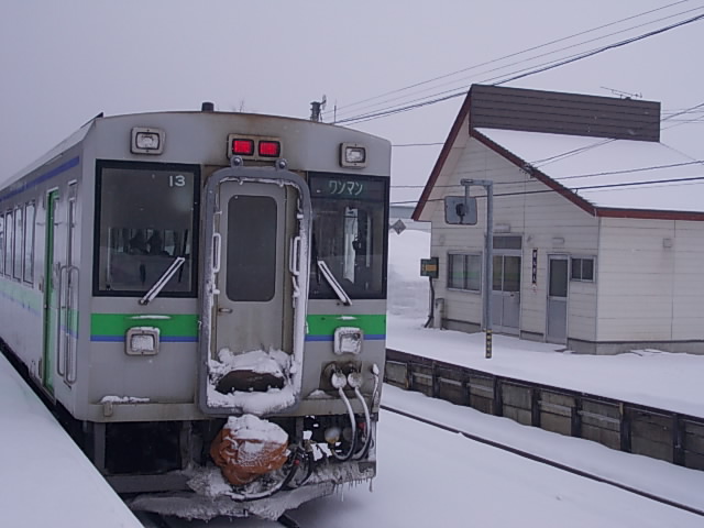 道北エリアを代表する貨車改造型駅である紋穂内ですが、個人的には、この爬虫類の体皮のようにいい感じでひび割れた風情が気に入っていたりする駅です。ここは天塩川の景観を楽しむのにお勧めしたい駅でありますが、日帰り入浴もできるびふか温泉の最寄駅でもあるので、温泉と鉄道が両方好き、という方には、ここで下車して温泉まで歩く旅をお勧めしたいです。ただ距離的には3キロ弱ありますので、利便性で考えると、同名の駅もある、もう少し北の天塩川温泉の方がお勧めといえるでしょう。(こちらは1キロくらいでしょうか…。)