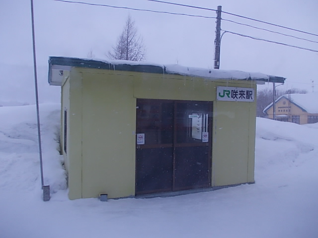両隣の天塩川温泉駅や音威子府駅は、比較的観光客の方にも馴染みの駅だと思いますが、その間にあるこの駅は、少しマイナーかもしれません。木造板張りホームに比較的新しい待合所、という組み合わせは、美深の初野駅などに近い風情だと思いますが、こちらは薄黄色をしていて、季節的には春が似合う駅といえるかもしれません。もしかすると駅名の”咲く”に掛けた配色なのかもしれませんね。尚、音威子府の無料村営バスが音威子府駅から天塩川温泉方面まで運行されていますが、途中この駅の傍も通過するので、ローカル駅マニアの方には利用価値が高いかと思います。
