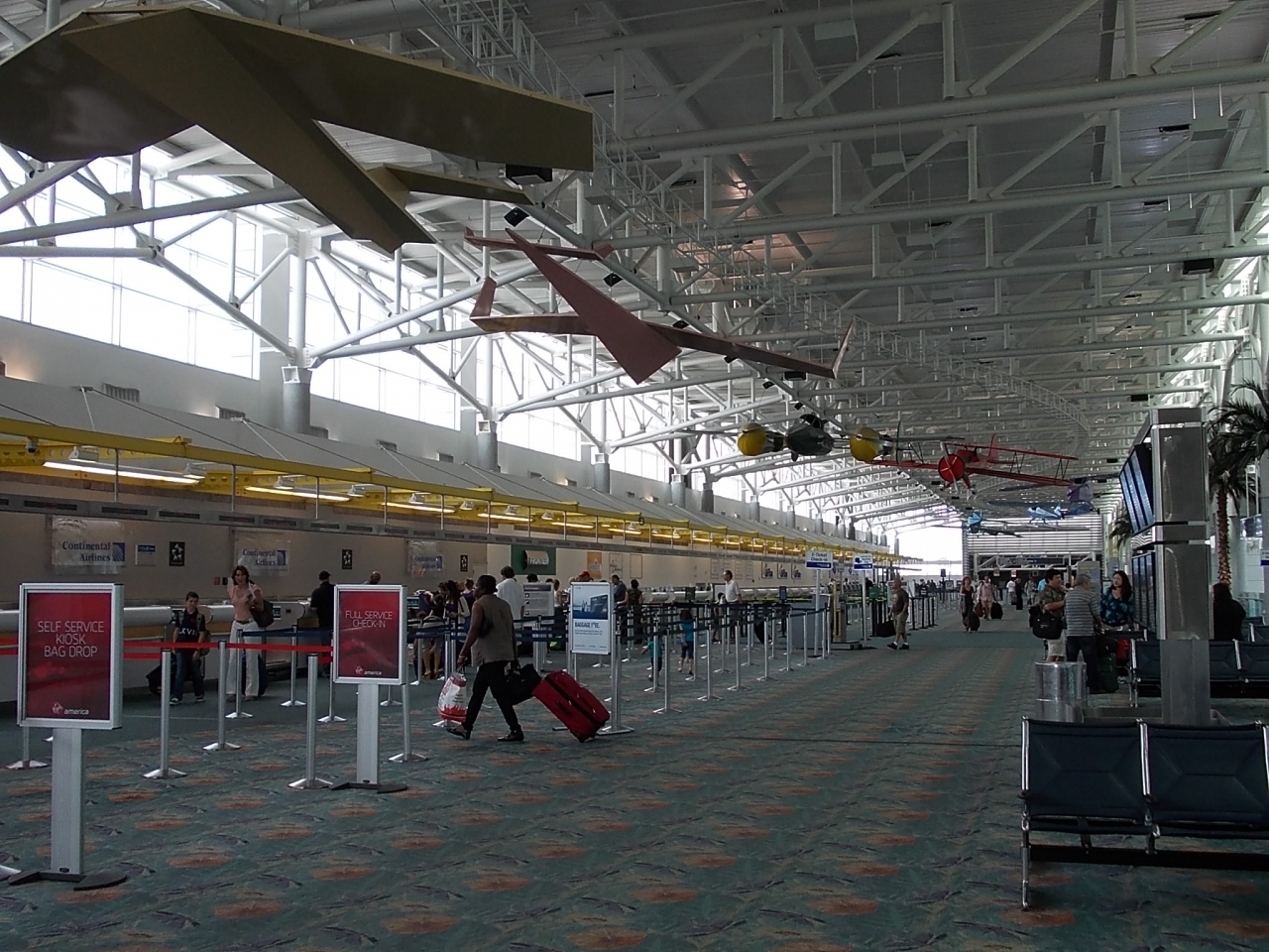 これまで米国の空港は沢山見てきましたが、自分の中で今のところ一番のお気に入りはこの空港です。まず、ここの空港は幾つかのターミナルがありますが、それぞれが個性的であり、どこもお洒落なデザインで満ち溢れています。航空機が天井に並んでいるターミナル1、スタイリッシュな町並みを再現したようなターミナル3など、なかなか落ち着ける場所です。また、ここの空港の最大の売りは、どのターミナルでも無料の無線LANが対応していることです。今、米国の巨大空港の多くは、有料でないと無線LANが使えないことが多く、電源を確保するのが容易な米国でも、結局はお金か、と、うんざりしてしまうのですが、そういうストレスはこの空港には全くありません。