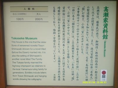 福島関所跡、関所記念館の並びにある、文豪島崎藤村の姉である園が嫁いだ高瀬家が、子孫の方々のご尽力もあって、資料館として運用されている施設です。