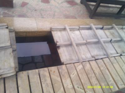 最初、足湯の箇所に木の蓋がされていて、あー、やっぱり冬はやってなかったか、とガッカリしていたら、よく見るとその蓋は湯冷め防止用で、その蓋を開けると、ちゃんと湯気が上がって来て、40度強の快適な足湯を堪能することが出来ました。