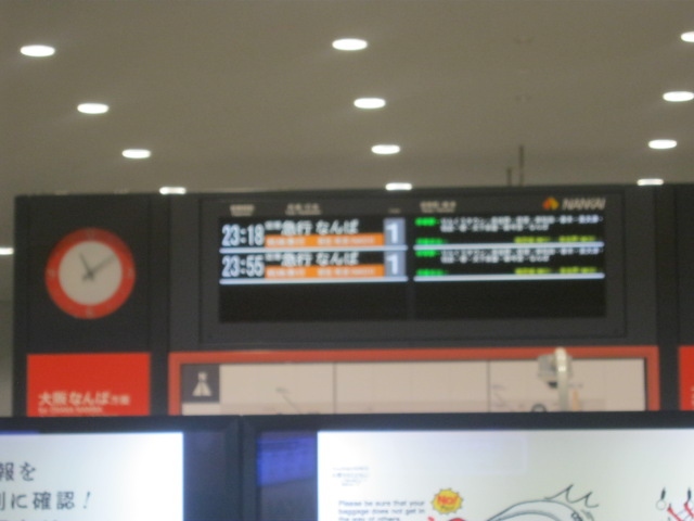 今回はイレギュラーがあって、思わぬ形での関空入りとなりましたが、最後、終電間際の列車が残っていたので、終電より1本早い難波行き急行に乗車しました。
