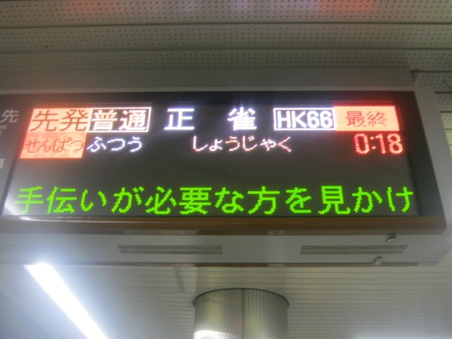 途中、地下鉄堺筋線に乗り換えるために天下茶屋駅で下車したのですが、何とそこでの乗り継ぎが終電となっていて、関空から終電に乗車していたら乗り継げなかったなと肝を冷やしてしまいました。この堺筋線の終電も行先が正雀駅までとなっていましたので、関空から地下鉄堺筋線・阪急線経由で京都方面に向かう予定がおありの方は、終電から1本前の列車でも間に合わないことを覚えておいて下さい。- 旅行時期