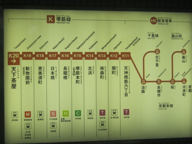 今回は関空に遅く到着し、最後は天下茶屋からこの地下鉄路線に乗り換えました。