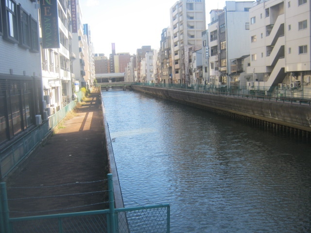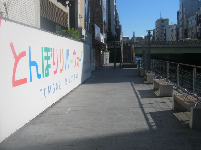 今回は、長堀橋駅傍のホテルから歩いて、日本橋から相合橋付近までの川沿いを一周する形で散策してみました。道頓堀川も、日本橋までが観光客に歩かれている区間だと思いますが、その以東にも、一応川は続いています。ただ、河畔の入口がフェンスで施錠されていて、その先は歩けないようになっていますのでご注意下さい。