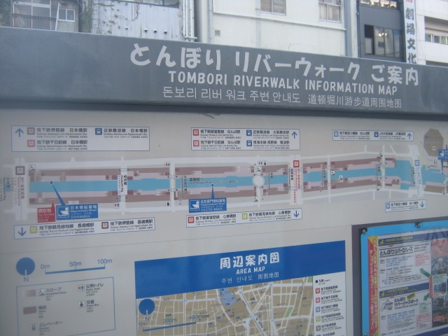 グリコのネオンでお馴染みの戎橋界隈から、東は日本橋まで、道頓堀川を周回するように整備されている散策道です。昔と比較すると随分と綺麗になった印象があり、状況次第ではありますが、夜間でも比較的安心して歩ける程度にはなったと思います。