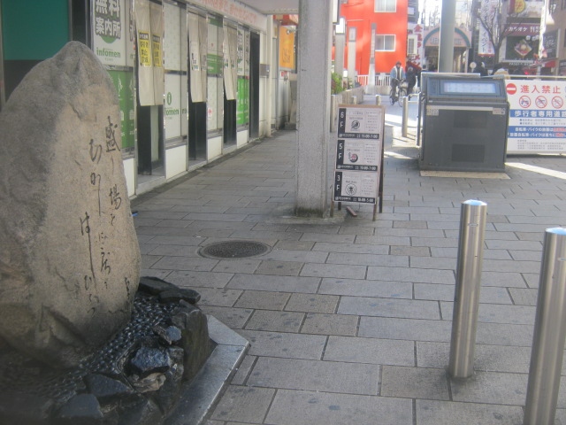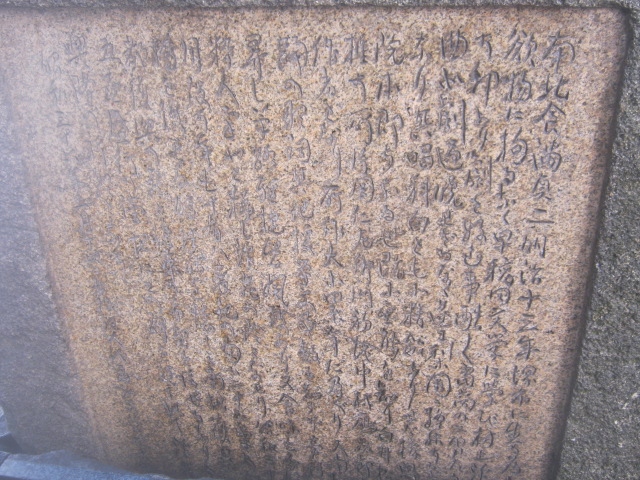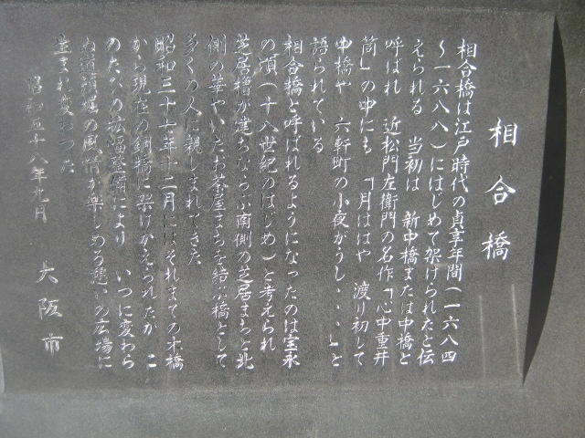 相合橋の北側にある、外観としてはなかなか立派な句碑です。ただ、ここが残念なのは、句碑の裏側に何やら解説文らしき文章が刻まれているのが、これが現代人の感覚では何が書いてあるか解読が困難で、この日の由来とか歴史的経緯とかを理解することが出来ませんでした。別に解説板とかを設置して欲しいなと思いました。