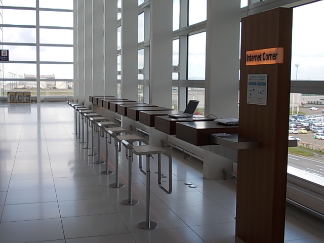 正午~15時ごろまではちょっと混雑しますが、それ以外の時間帯は比較的空いているので、色々な商業施設で遊び疲れた方は、こちらに移動して休憩すると良いかと思います。また、チェックインカウンターの脇には、電源が自由に使えるPCスペースも整備されていて、また最近は無料の無線LANも使えるようになりましたので、ネットサーフィンをするのにも最適な場所になっています。なので私は、飛行機に乗らない時でも、フリー切符を持っている時はよくここでネットをしに足を運んでいます。