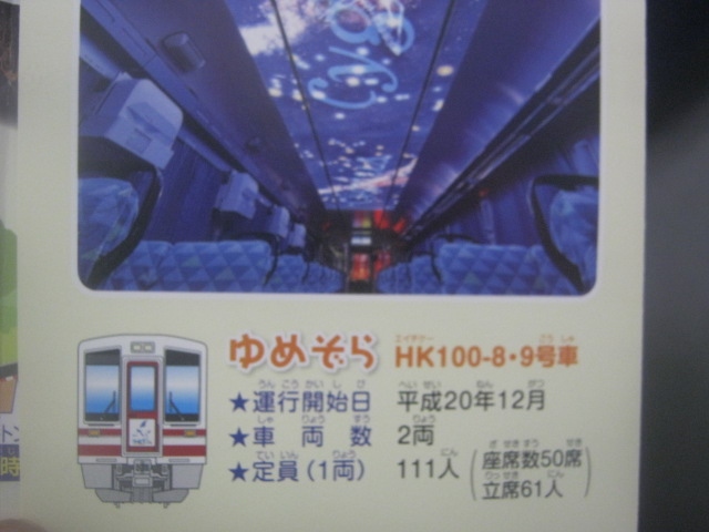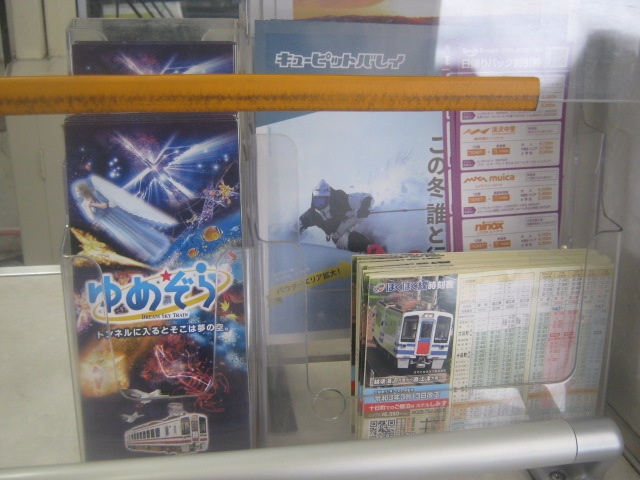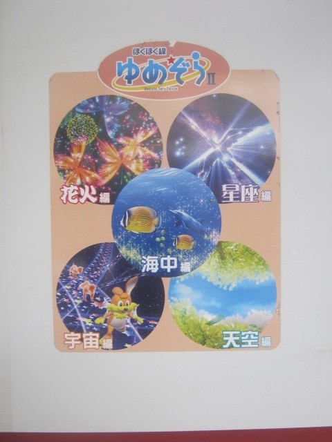 私は往路で比較的長い距離、復路で短距離をゆめぞら車両利用で乗車しましたが、運よくダブらずに5種類の映像を楽しむことが出来ました。ただ、トンネルに入ると轟音がするので、映像に付随したメロディなどは、席によってはちょっと聴こえ辛く感じるかもしれません。