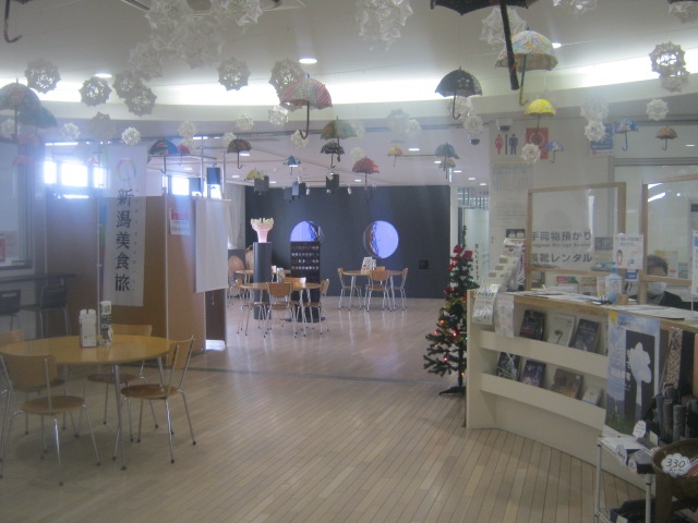 十日町駅直結の観光案内所です。十日町にはJRと北越急行が乗り入れていますが、この観光案内所は北越急行側にあり、ちょうどこちらから出ると、国宝の火焔型土器で有名な十日町市の博物館に近いので、事前に立ち寄ると良いです。