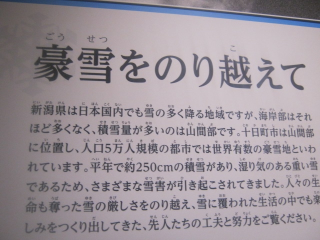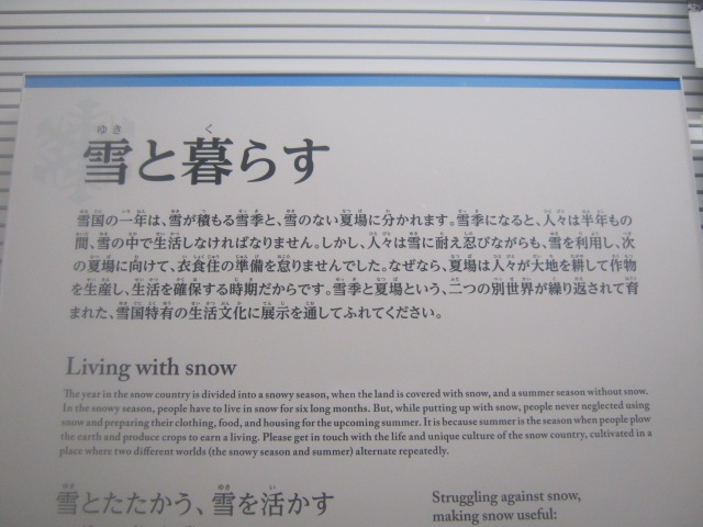 ただ、私は同じ雪国に生活する者として、より感銘を受けたのはここの雪に関する展示で、映像などを交えながら、雪との格闘の歴史や、共存を模索する解説など、ためになることが多かったです。