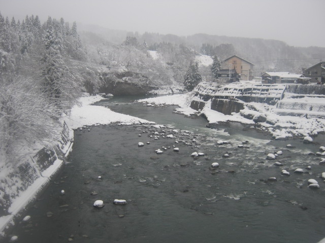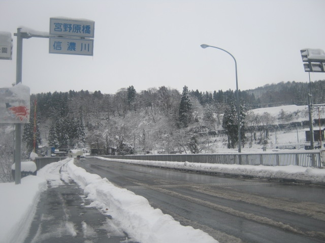 国道117号線沿いに架かる宮野原橋というのが、実質的な県境になるかと思いますが、橋の入口には新潟県側の呼称である信濃川、という看板も付されていて、長野県側から来た人への呼称変更を告げている風情でした。