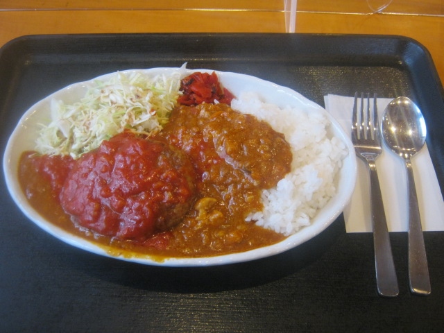 今回は新潟県側から歩いて長野県へと越境し、長野県入境を記念して最初にここでお食事をしました。メニューは色々とありましたが、別枠で大々的に宣伝されていたトマジューハンバーグカレー(1000円)をオーダーしてみました。