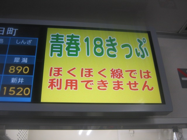 こちらの路線は青春18きっぷでは使用できないのですが、北海道東日本パスと似たようなルール(勿論18きっぷは他のJR各社でも利用できますが…)のため、誤用される方もいるようで、頻繁に”18きっぷは使用できません”の表記が見られたのが痛々しく感じました。