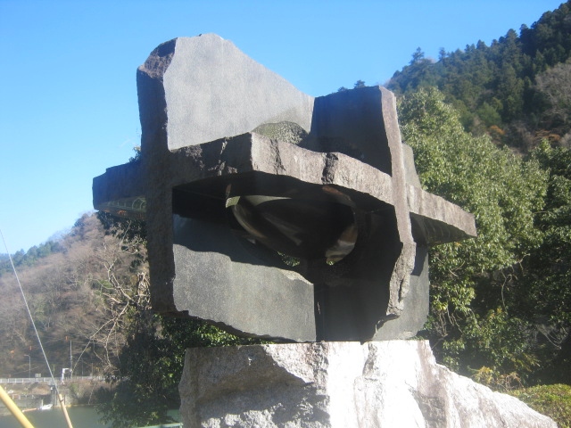橋の入口には”相模湖野外美術館”の一環として、原透氏の「囚われた惑星」という作品が置かれていて、なかなか意味深で含蓄深い作品なので、是非鑑賞してみて下さい。- 旅行時期
