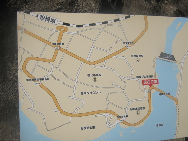 JR中央本線の相模湖駅からは徒歩10分位で行ける公園です。文字通り相模湖岸に沿って拡がっていて、私の訪問時は平日で、快晴にも恵まれたため、散歩やジョギングを楽しむ多くの地元の方が憩っておられて、とてものんびりした風情に癒されました。