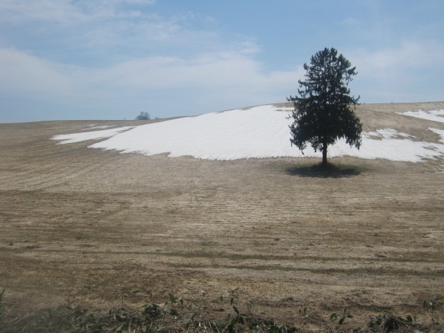 今回はまさに、完全な雪解けを願う道北の民としての”春よ来い”的な感覚からこの木を眺めましたが、北海道民であっても素直に雄大で美しいなと感じられる付近の景観で、もうあのドラマの放映から四半世紀が過ぎた段階で、かなり忘れられた感もあると思うのですが、改めて素晴らしいなと思いました。