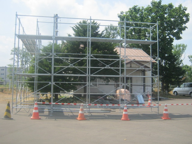 丁度、お昼休みの時間帯に訪問したので、工事作業員の方に内部の様子を見せてもらいましたが、話を聞く限りでは、どうやら月曜日(7月26日)から本格的な解体作業が始まるとのことで、訪問時点では解体のための囲みの部材を組み立てている作業の途中でした。