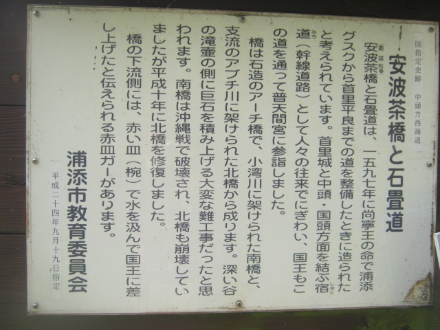 元々は、16世紀後期に首里と浦添グスクとを結ぶ”王の道”として整備された区間の一部に架かる橋でしたが、オリジナルは残念ながら沖縄戦により壊滅的に破壊されてしまっているため、現在見られるのは、後に整備された復元の姿ということになります。