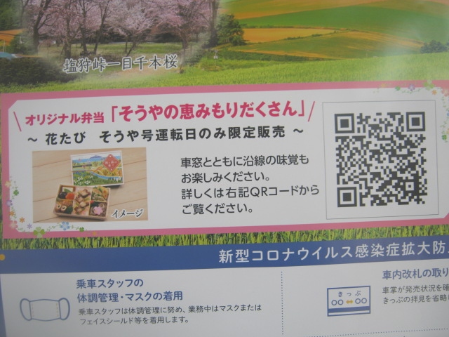 実はこの観光列車は、2020年の春にも運行予定で、この時はかなり早い時期に緊急事態宣言が発令されたこともあり、運休の発表も早かったのですが、2021年に関しては、運行初日予定(5月15日)の前日に、急遽5月16日からの全道向け緊急事態宣言の適用が決定してしまい、5月14日の夜に、正式リリースとして、今シーズンの全ての「花たびそうや」の運休が発表されるに至ってしまいました…。