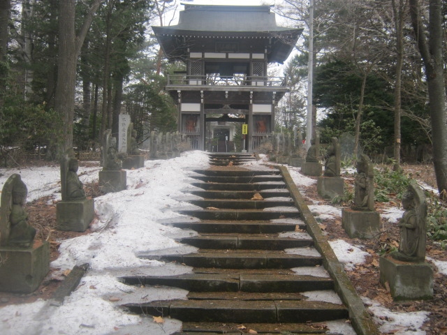 本堂自体はちょっと高台に建っていますが、道路側から続く石段は結構長いので、表から登り返すのは体力的に大変だと思います。