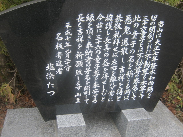ご本尊は不動尊ですが、真言宗のお寺ということもあり、脇に弘法大師様のお姿も拝めますし、両脇に三十六童子が並ぶ石段の景観も素晴らしいと思います。- 旅行時期