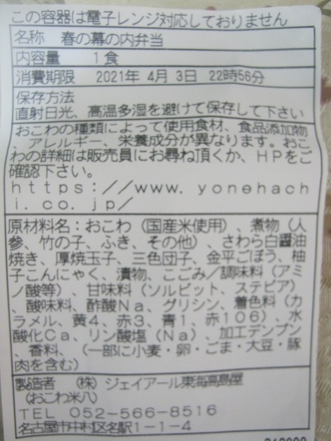今回は約4年ぶりにこちらのお店のお弁当を購入してみました。春バージョンの幕の内弁当でしたが、6ブロックに小分けされたレイアウトや、赤・緑・白の三色串団子などは変わらず入っていました。おかずに関しては、四年も経過すると流石にデザインも変化するようで、こういうお弁当は時々購入して、経年的な変化を研究するのも楽しいかなと感じました。因みにお値段に関しては、4年前と比較すると50円ほど値上がりしていて990円となっていました。