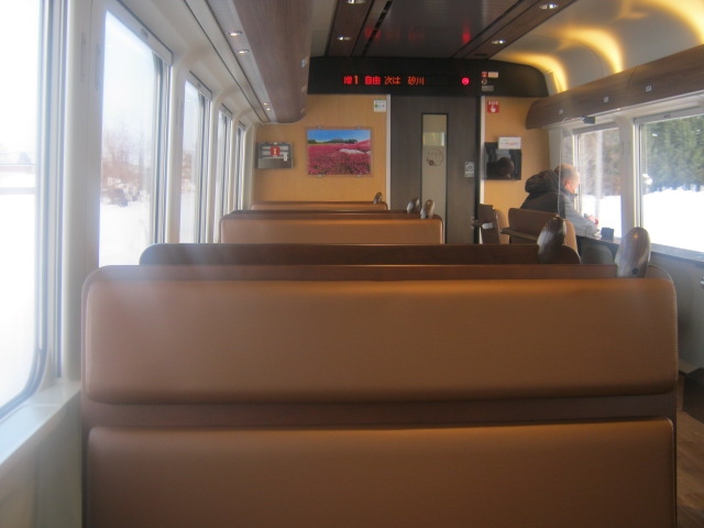 まず旧号との違いとして挙げられるのは、新号は専用車両での運行ではなく、通常の特急「ライラック」と同じ車両を使用していること、旧号時代は全車指定席だったのに対し、新号になってからは自由席で利用できるようになったこと、停車駅が増えたこと(旧号時代の途中停車駅は岩見沢・滝川だけでした…。)等の点です。