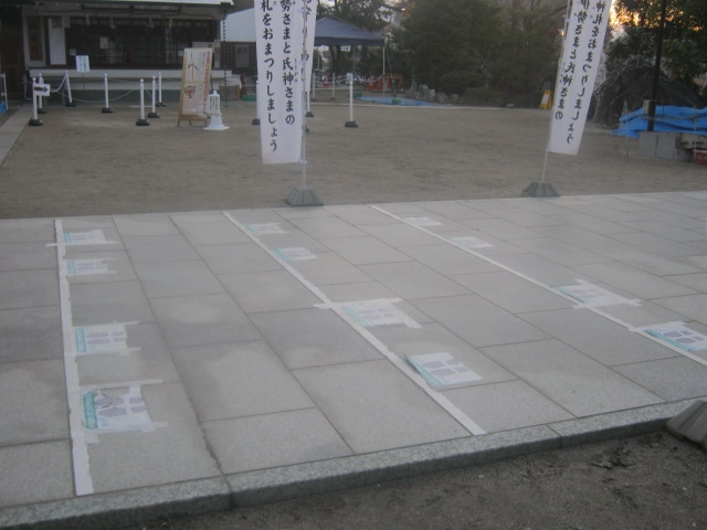 勿論私は、密を避けるためにも年跨ぎや元日の参拝を諦めて、空いていると予想された1月2日の早朝に参拝させて頂きましたが、通路が一方通行になっていたり、参拝の列を予想してのソーシャルディスタンシングを働きかける参道上の待機場所表記など、神社の方の労苦が偲ばれる光景が広がっていました。