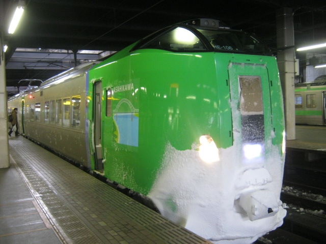 しかし、1月という季節はやはり道北には厳しい季節でもあり、私は1月14~17日の日程でこのフリー切符を利用したのですが、結局はまなす編成に乗車できたのは3回だけ、一回目は初日の美深→旭川、そして二・三回目は途中幌延で吹雪のため運転打ち切りとなった札幌→幌延(は宗谷としての運行)、幌延→旭川(は運行打ち切りとなってしまったので、折り返しの臨時特急としての運行)だけで終わってしまい、撮りたかった稚内駅での冬のはまなすちゃんをゲットすることが叶いませんでした。
