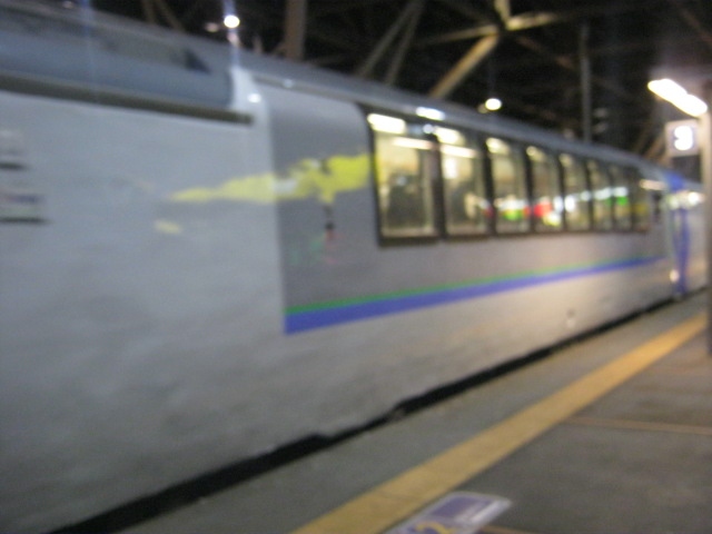 オホーツクとして札幌=旭川間を乗車できるのは、朝と夜の一日一往復しかありませんが、この時点ではまだ183系に乗車することが出来ました。同じ日の夜には、旭川駅にて、切符の効力外で乗車は出来なかった「大雪」のお見送りにも立ち会いましたが、こちらでもまだ、183系の雄姿を拝むことが出来ました。