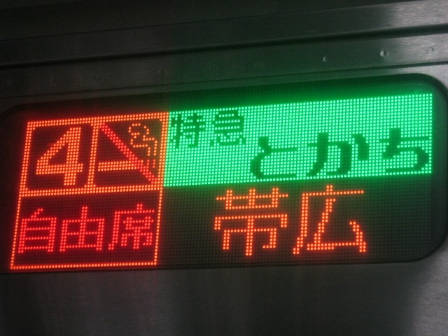 札幌と帯広とを結ぶ特急としてお馴染みの「とかち」ですが、この列車は新千歳空港から道東方面に向かう際に利用するお客さんも多いので、南千歳=帯広間がより混雑する印象があります。今回私は逆にこの列車には札幌から南千歳(正確には追分までですが、スケジュールの都合上南千歳=追分間は乗車できませんでした)までしか乗れないフリー切符利用だったので、忠実に札幌→南千歳で乗車しましたが、コロナ禍ということもあってか、この区間はガラガラで、ずっとこの状態なのかと寂しく思いつつ、南千歳で下車すると、逆にここから乗車するお客さんは結構多くて(特に自由席)、そのギャップに驚かされました。
