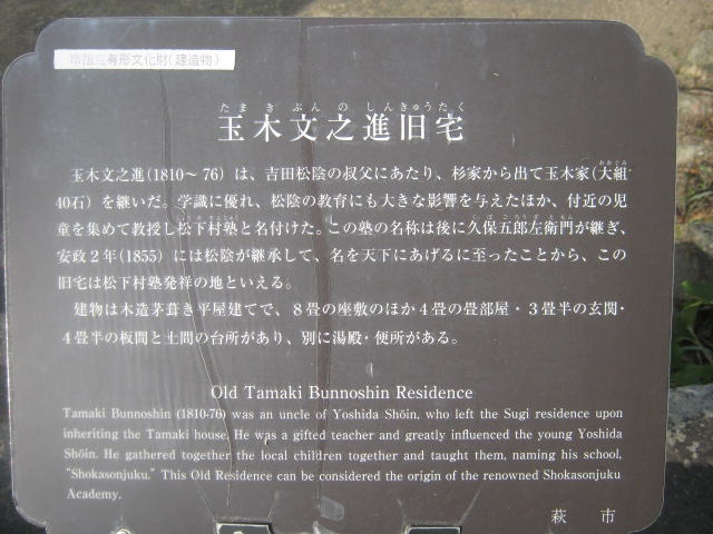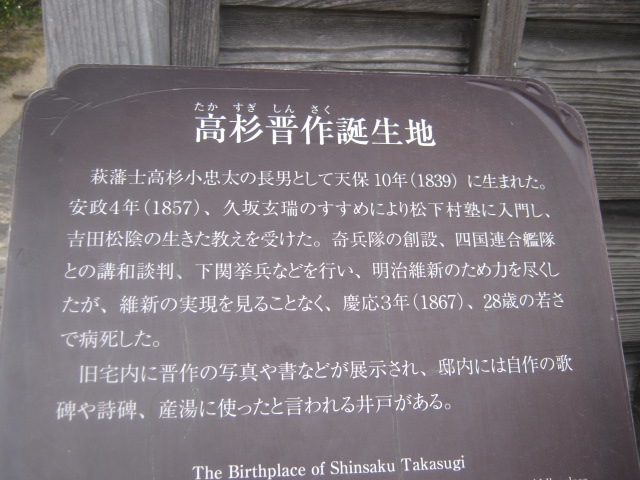 松陰神社の裏手の通路を歩いているときにふと見つけたのがこちらの石碑でした。解説板を読むと、どうやら高杉晋作らと並んで、松下村塾では松陰門下の四天王の一人としてその才能を開花させつつあった人物のようです。