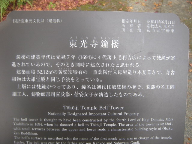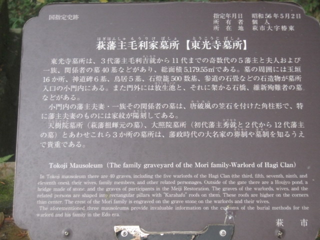 松陰先生の生誕地・お墓のすぐ近くにある黄檗宗のお寺がこちらです。境内は結構広くて、まず入口に聳える総門から入ると、三門、鐘楼、大雄宝殿と次々と魅力的な建造物が現れて圧倒されます。そして最奥には、歴代萩藩主毛利家の墓所(ここには第三代から奇数代の藩主が祀られています)があり、その佇まいも最高に素晴らしかったです。